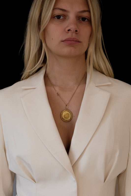 15ct Yellow Gold Victorian Medallion Pendant, Floral & Engine-Turned
