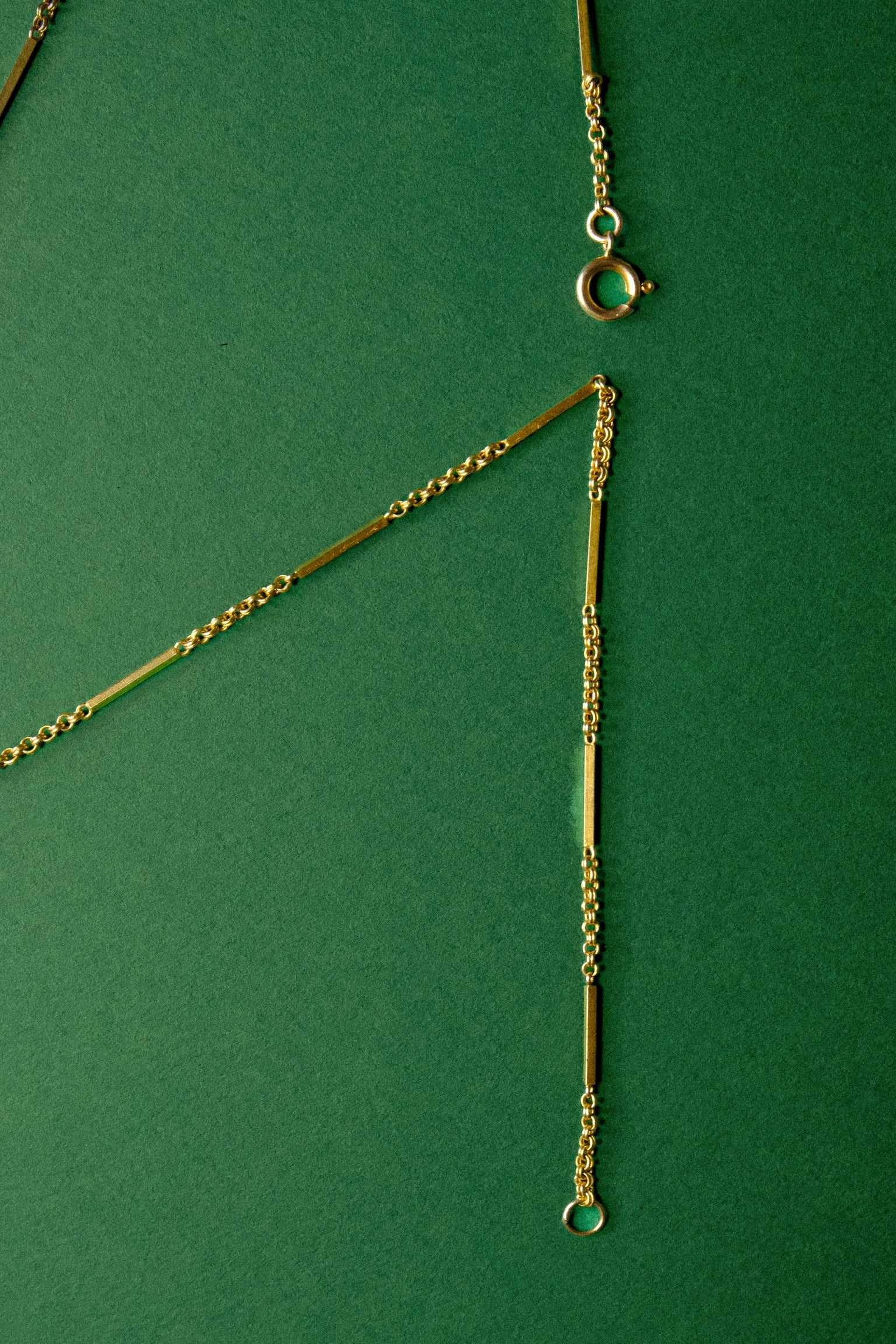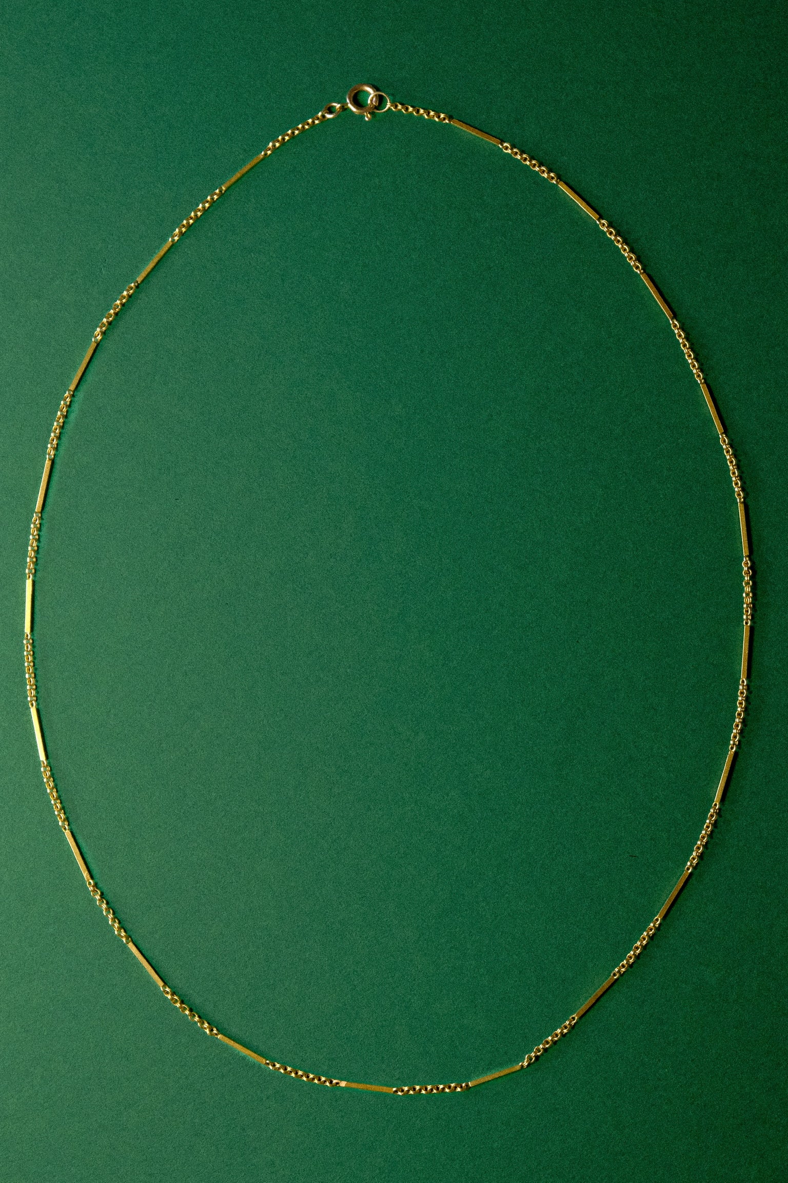Indulge in the charm of vintage elegance with this 15ct Gold Fancy Link and Bar Chain Necklace. Crafted from radiant 15ct gold, this exquisite piece features alternating fancy links and sleek bar sections, creating a striking contrast between delicate design and bold structure. The intricate craftsmanship of the fancy links offers a touch of refinement, while the bar elements add a modern twist, making this chain both timeless and unique.